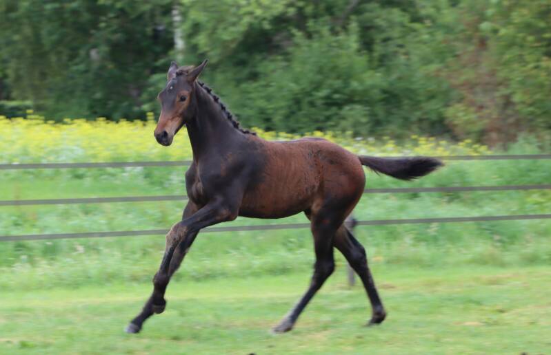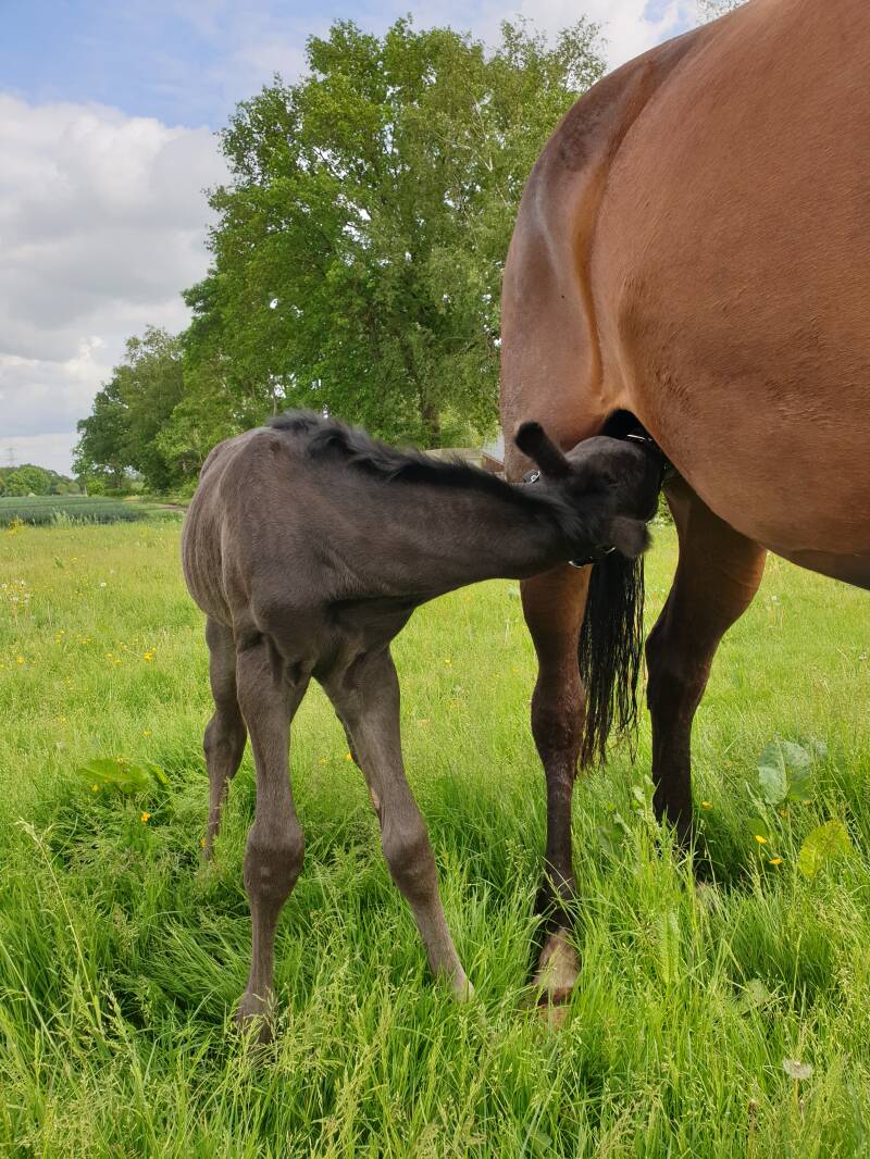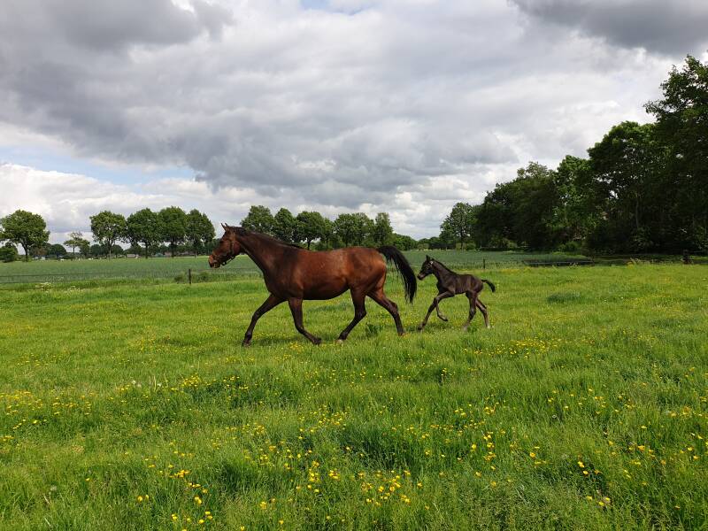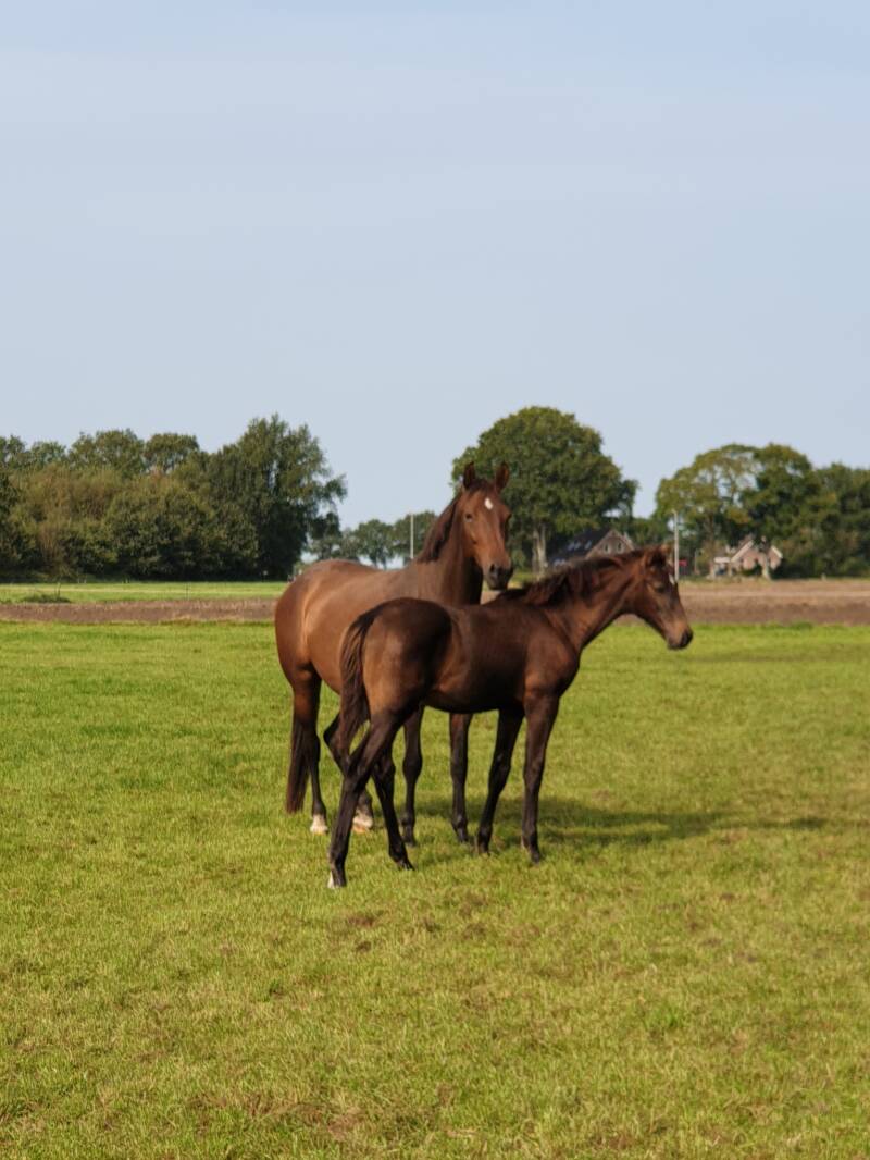 Danzle was het eerste veulen van Janitta. Vanwege de kwaliteiten die wij in de wei zagen en de jury van Zangersheide dit bevestigde tijdens de veulenkeuring van Zangersheide, besloten we Janitta opnieuw aan te dekken met Dominator 2000 Z.
